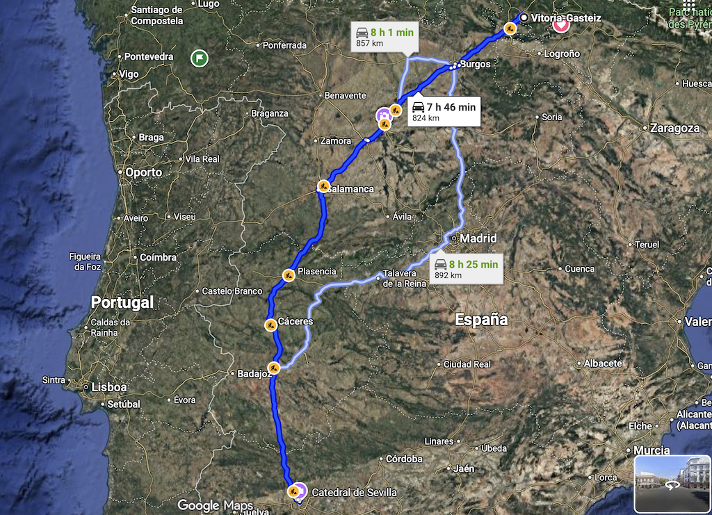 Salimos de Sevilla por la mañana de nuestras paradas, 8.00 h Gran Plaza (junto al Quiosco de prensa), 8.15 h José Laguillo (frente al Hotel Catalonia), 8.30 h Cervecería Ronda Alamillo y después de una parada para desayunar llegaremos sobre las 12 horas a la primera ruta de este maravilloso viaje (recomendamos llevar bocadillos).