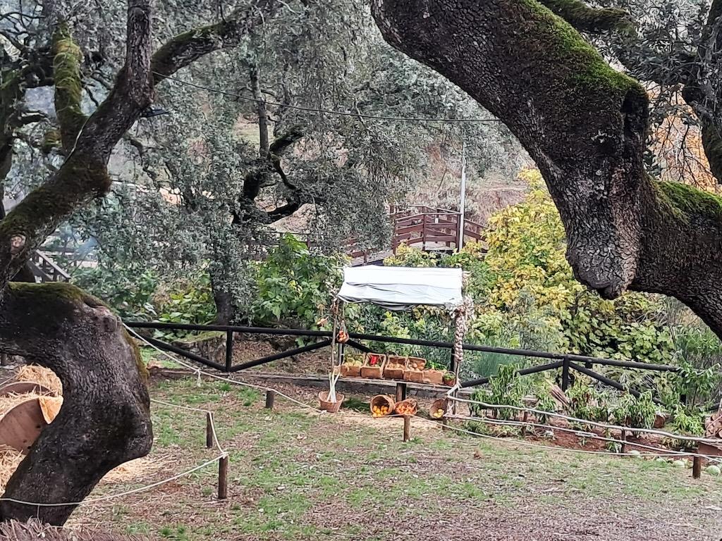 Y por el sendero llegamos a Puerto Moral. Otros villancicos nos recibieron en la pequeña aldea que se estaba montando para el Belén Viviente. Ovejas, pastores y tenderetes entre cestos de frutas y verduras. Un decorado original que seguro atraerá más visitas en los próximos días.