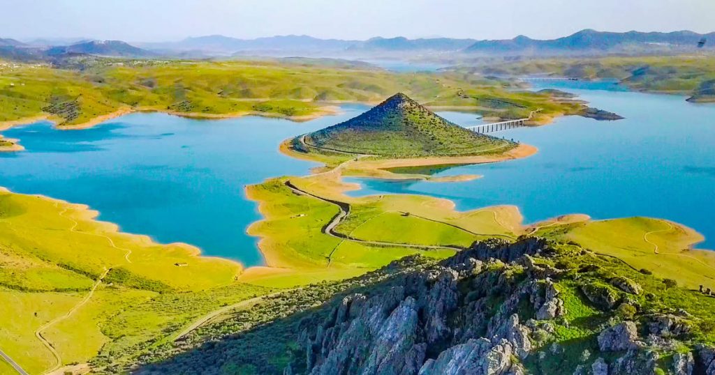 Nos desplazaremos en nuestras furgonetas hasta la base de este imponente cerro, ascenderemos hasta su cumbre tras bordear completamente este inselberg, ascendiendo de forma circular hasta su cima. Arriba el espectáculo está servido donde se fusiona el horizonte con las grandes masas de agua del embalse de la serena, el embalse español de mayor superficie.