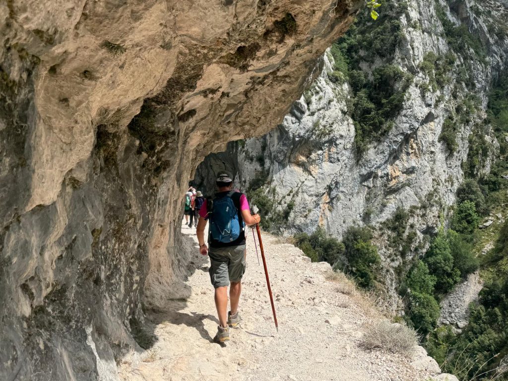 La Ruta del Cares es también conocida como la Divina Garganta, es famosa por sus vistas y la estrechez del camino, que atraviesa un impresionante desfiladero. Con roca a un lado y el precipicio en el otro, tiene una anchura que va desde 1 a 3 metros, espacio suficiente para pasar y cruzarse con alguien sin problemas.