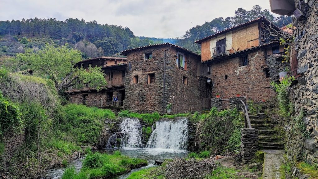 La Ruta Entre ríos y bosques situada en el término municipal de San Martín de Trevejo, es uno de los lugares idílicos que teníamos en nuestra lista de cosas por hacer en nuestro primer viaje por la Sierra de Gata. El camino comienza junto al convento y alejándonos poco a poco del pueblo de San Martín de Trevejo, vamos introduciéndonos de lleno en un castañar hasta llegar a los Castaños del Cobijo, también llamados “Los Abuelos”, dos castaños centenarios con una edad estimada de 600 años.